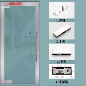 • Khi cửa kính cường lực sử dụng bản lề cửa kính thường đi kèm với bộ phụ kiện Khóa cửa kính cường lực, Kẹp cửa kính chính AB, Tay nắm cửa kính, Kẹp góc