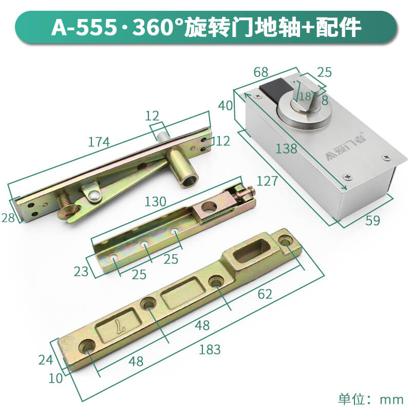 • Bản lề sàn hay còn gọi là bản lề thủy lực được biết là chi tiết không thể thiếu trong lắp đặt cửa kính cường lực chính.